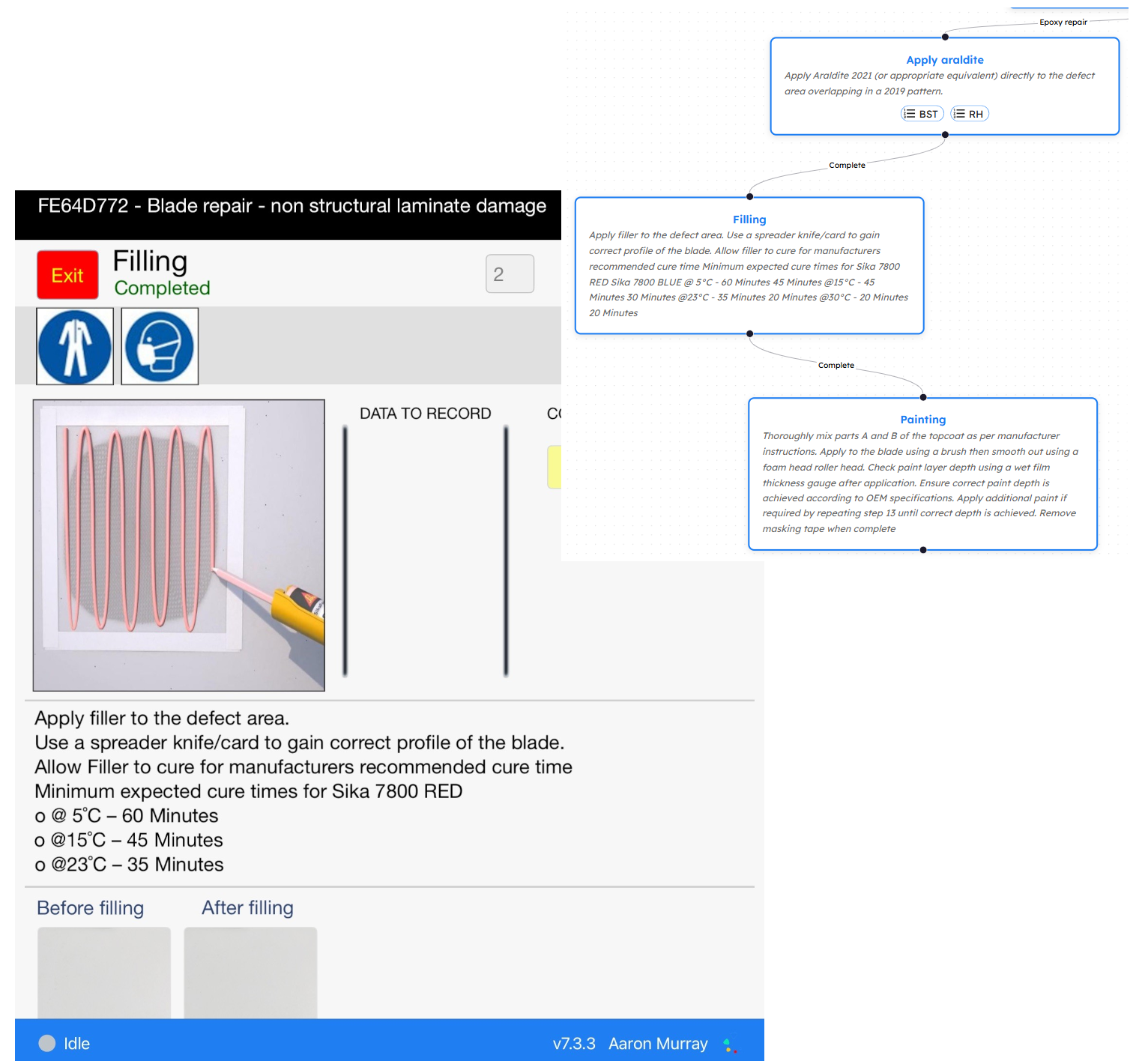 This (new for the 2026 season) process is empowering technical managers, enabling them to compose structured but flexible processes that guide field technicians through even the most involved client repair or testing protocols. You can be confident that technicians will collect the images, environmental readings and batch numbers needed to satisfy your client that the work has been completed professionally. Collected data can be viewed in real-time (subject to network availability), providing confidence that the images are at the standard required, ensuring no return to the asset will be required.